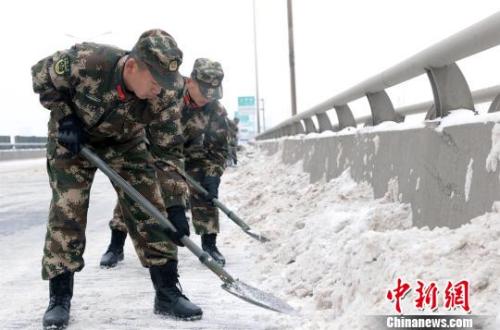 资料图:湖北武警在武汉清扫路面积雪 何智利 摄