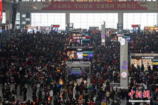 2月1日,2018年春运正式启动。在铁路虹桥站候车大厅内,旅客们正在等待检票进站上车。 殷立勤 摄