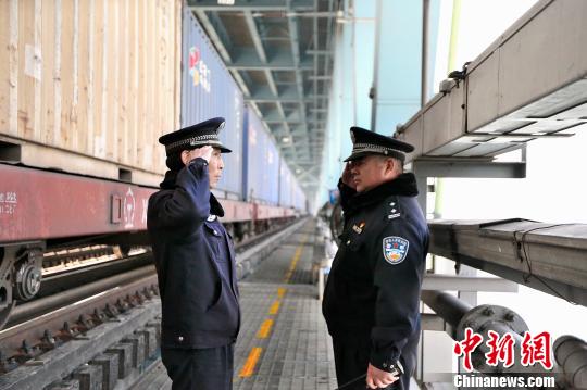 3月2日,在安徽省芜湖长江大桥铁路桥上,执勤中相遇的杨少明(右)和翟宗寅互相敬了一个礼。 喻超 摄