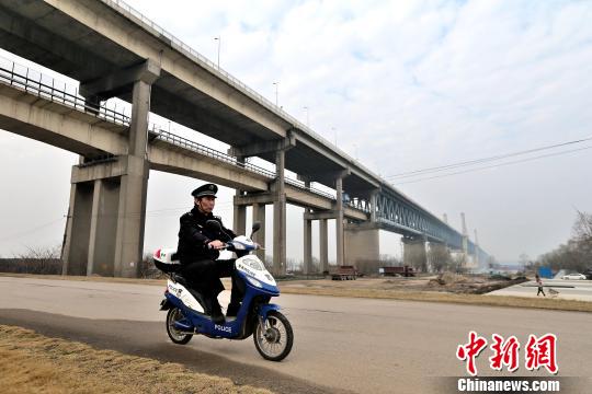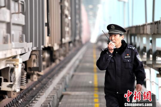 3月2日,在安徽省芜湖长江大桥铁路桥旁,翟宗寅在执勤巡逻。 喻超 摄