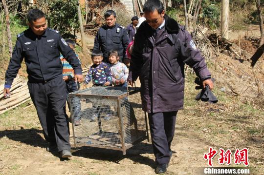 图为民警捕获猕猴 昌宁县森林公安局供图