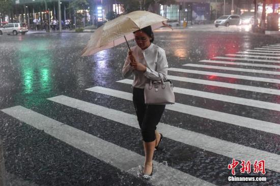 资料图:一名女子撑伞行走在雨中。中新社记者 陈骥旻 摄