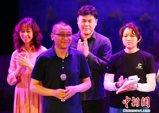 九洲残疾人艺术团团长朱光俊(左二)等主创与观众见面。 泱波 摄