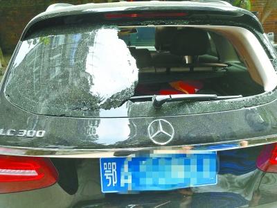 段先生汽车的后挡风玻璃被砸 通讯员唐时杰 摄
