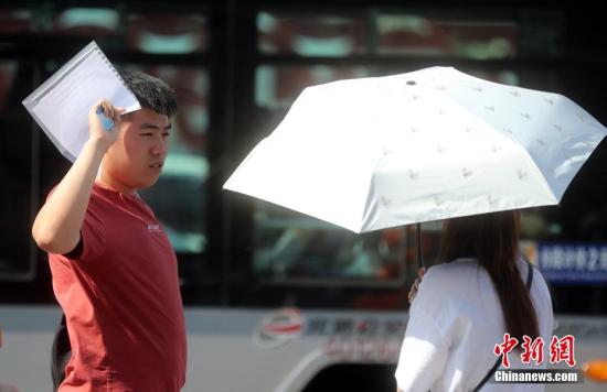 资料图:一名女子撑伞防晒。 中新社记者 张宇 摄