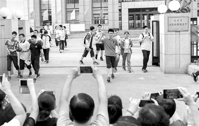 6月8日下午,北京市东直门中学考点,英语科目的考试结束后,考生们走出考场。当日,全国部分地区2018年高考落下帷幕。本报记者 王伟伟 摄