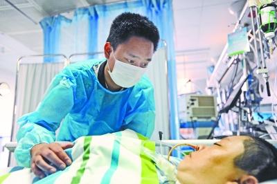 6月12日,中南医院ICU病房,冯涛呼唤昏迷中的妻子记者苗剑 摄