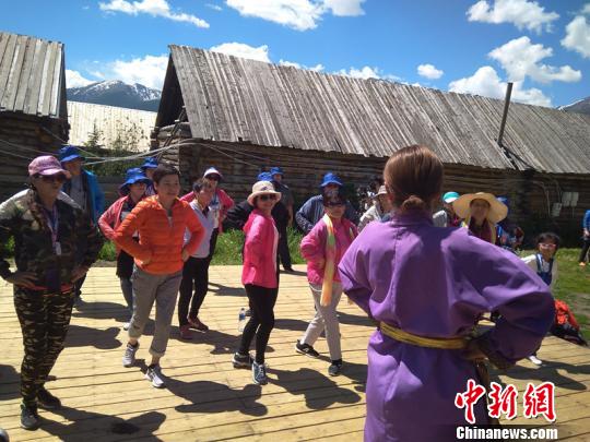 国内外游客在景区学跳蒙古族舞蹈。 朱景朝 摄