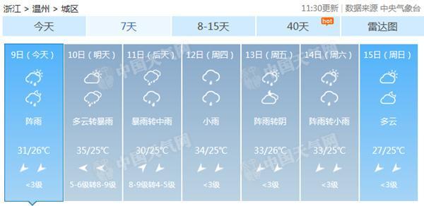 浙江省气象台预计,受其影响,明天傍晚起,台州、温州沿海海面风力逐渐增大至9-11级并继续增强到11-13级;明天夜间,温州地区风力也逐渐增强到9-11级。明天傍晚到后天,温州、台州、丽水等地有大到暴雨,部分地区大暴雨。