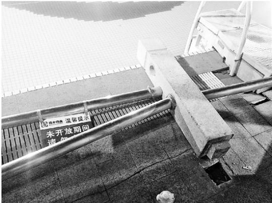 一位阿姨告诉记者,当时她正带着女儿,就在出事小男孩这个位置的对岸,“突然听到砰一声巨响,然后小男孩哭着从游泳池里跳了起来。一边哭,还一边喊爸爸。”她说,她在大概七八米远的对岸都能看到小男孩血流得非常多。“唉,他躺在担架上的时候,两条腿都在抽搐着。”