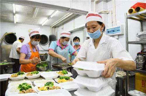 广州市越秀区六榕街老人饭堂的工作人员为辖区老人准备外送午餐(6月15日摄)。新华社记者 邓华 摄