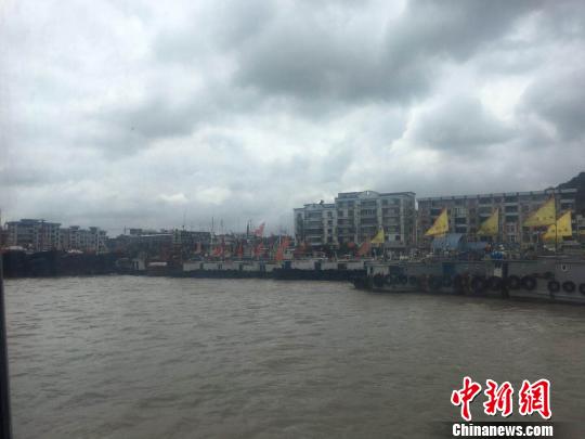 宁波象山石浦港回港避风的渔船整齐地停靠岸边。 李佳赟 摄