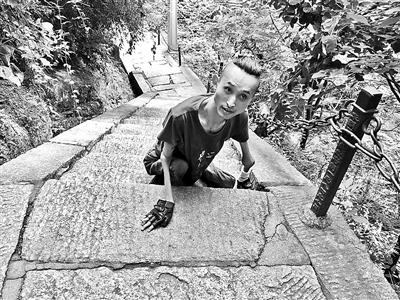 频繁爬山对于这个身高1米75、体重却只有50斤的小伙子来说,无疑是个巨大的负担,但他却不想停下。休息好之后他想先去爬长城,“我还没去过长城,很想去一次”。