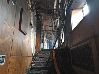 哈尔滨北龙温泉休闲酒店,图为起火酒店二楼楼道。解培华(黑龙江分社)/中新社/视觉中国