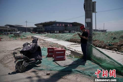 图为一名建筑工人在北京新机场建设工地。中新社记者 崔楠 摄