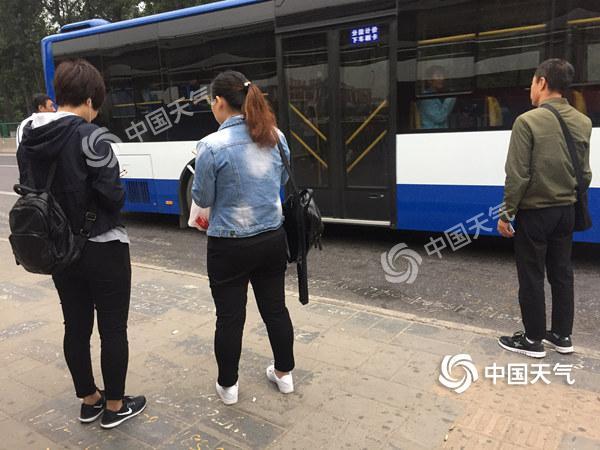 清晨气温较低,候车乘客都已穿起一身秋装。(关禺/摄)