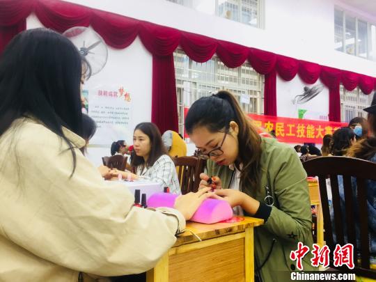 中新网柳州10月12日电 (周潇男)砌墙、现场烹饪、修理汽车……10月12日,广西柳州市第五届农民工技能大赛暨柳州市第四届农民工家庭服务业大赛开赛,来自该市各乡镇和企业的800多名农民工角逐22个工种的比拼,选手们纷纷拿出“看家本领”,切磋技艺。