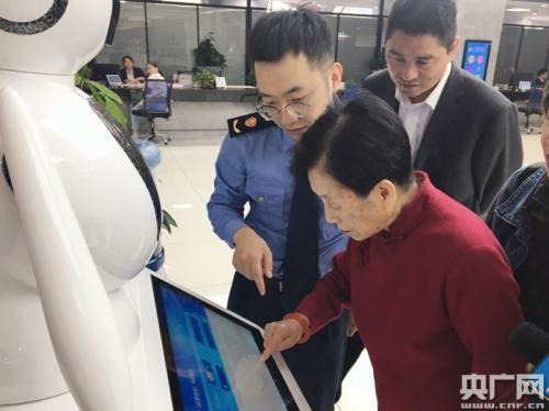 冯爱倩在操作智能注册机器人办证(央广网发 金华台供图)