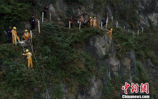“蜘蛛侠”正在宝成线广元境内排查危岩。 刘忠俊 摄