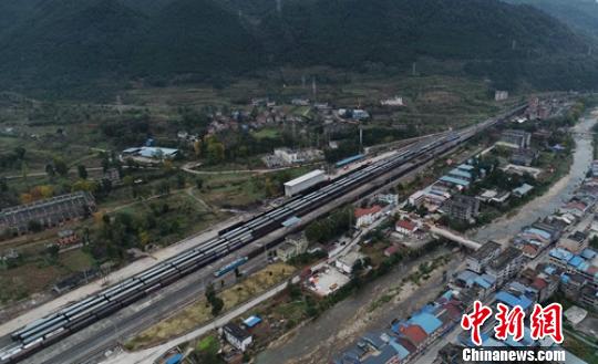 一列中欧班列列车正通过宝成铁路线雁门坝大桥。 刘忠俊 摄