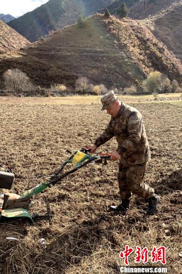 农田不翻耕会影响来年庄稼收成,村民顿珠今年冬天因生病卧床,无法下地干活,便民服务队官兵得知情况后,主动帮助他翻耕农田,10余名官兵现学现做,用,时间将顿珠家的农田全部翻耕完成。