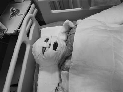 全身大面积烧伤,躺在床上接受治疗的李辰玺。