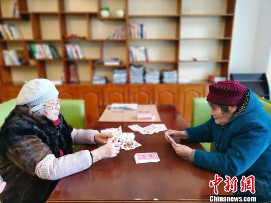 南充嘉陵长寿老人平时扑克牌娱乐。 戚原 摄