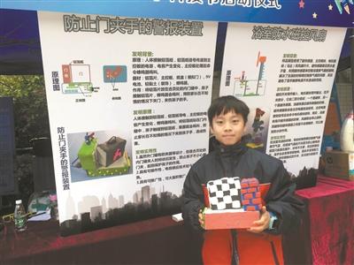 广州日报讯 (全媒体记者刘晓星摄影报道)一个标准的“宠妹狂魔”是怎样的?建设大马路小学四年级的潘一然给出了示范。作为哥哥的他为了保护妹妹,发明了一个“防门夹手神器”。昨天,该“神器”在越秀区中小学科技节启动仪式上展出。