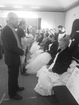 12月16日7时30分许,13对中老年夫妻在家人的陪伴下早早来到了位于联盟小区内的大地幼儿园活动现场,在义工化妆师的帮助下“新娘子”们化上精致的妆容,披上了洁白的婚纱,并拍摄了人生首张婚纱照,还和爱人一同携手走上红地毯,交换爱情信物、宣爱情誓言。现场,“新郎”和“新娘”都流下了激动的眼泪,他们紧紧地拥抱在一起,为大家诠释了什么叫做“伉俪情深”。与此同时,他们也为大家讲述了爱情故事,一段段感慨的发言,分享着对婚姻的独特见解。当看到儿女跪拜在脚下,所有人的眼眶都湿润了。而当一个四世同堂的家庭上台合影留念时,更是把现场气氛推向了高潮。