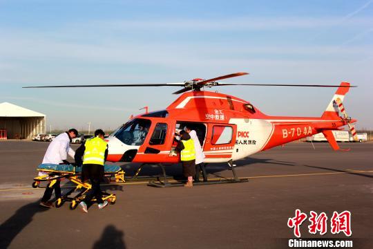 16:23,直升机降落至银川市花博园通用航空机场,宁夏医科大学总医院救护车进行短暂接驳后将患者送至医院急诊进行治疗并完成救援行动。