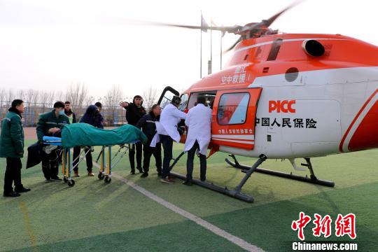 中新网银川12月28日电 (于翔 李佩珊)12月28日15点38分,伴随着螺旋桨的轰鸣声,一架直升机落至中卫,两名医护人员迅速下机,在一旁等候的患者随即被接上直升机;16点23分,直升机平稳降落银川。45分钟的空中爱心接力,让一名病患成功转院接受进一步治疗。