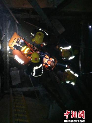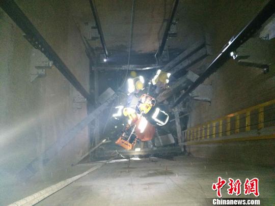 工人不慎跌入6米深电梯井消防员接力营救 李斌 摄