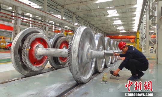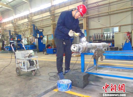 高洪权精心用磁粉探伤车轴。 张秋生 摄