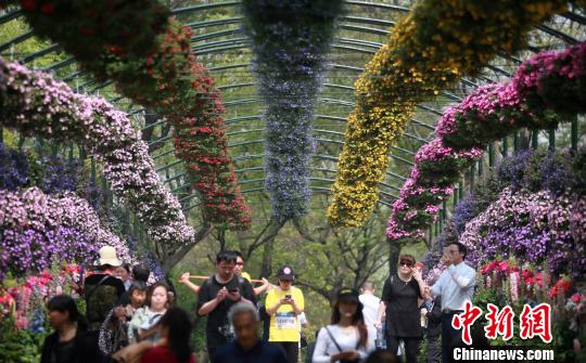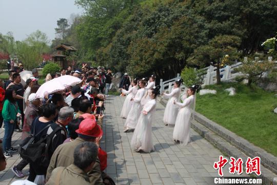 图为4月8日,扬州“万花会”开幕,吸引众多中外游客前来踏青赏花。 崔佳明 摄
