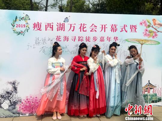 图为在瘦西湖畔巡游的郁金香、琼花、牡丹、海棠、桃花五大“花仙子”。 崔佳明 摄