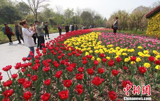 图为游客观赏盛开的郁金香。 孟德龙 摄