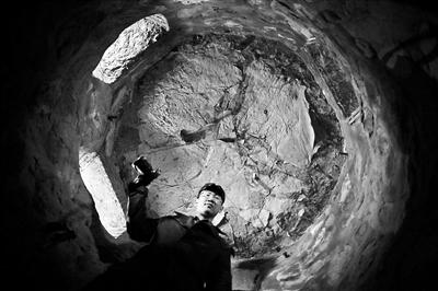北青报记者随同王先生顺着梯子直下地洞,地洞见底后便直角转弯伸向碉堡。接下来的地道暗淡无光,高约2米,弧形顶,宽窄只够一人通过,地面堆满垃圾,让人寸步难行。地堡的小门几乎被大块毛石封阻,只留下一个小豁口,王嵬匍匐着身体爬了进去。