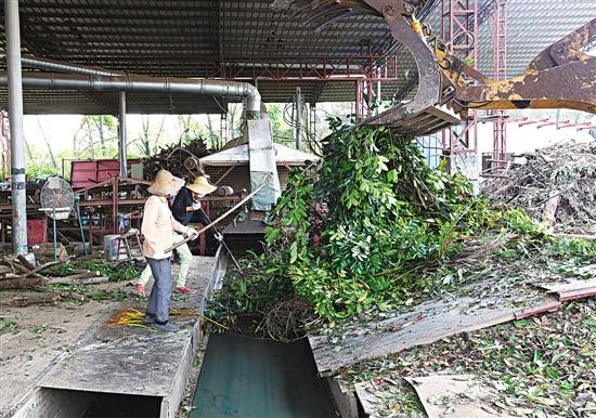 伴随着机器的轰鸣声,树枝、树叶很快被加工成碎屑,碎屑经过10-15天的发酵之后进行二次粉碎,再经过相关处理之后就可变为有机肥料,销往花卉市场。4月17日,记者走进位于东莞市道滘镇大鱼沙村大鱼沙工业区的东莞市致力新材料科技有限公司(下称致力新材料),据了解,该企业为东莞首家对绿化废弃物进行深加工处理的企业,目前日处理绿化垃圾80余吨。未来,他们计划在全市分片进行布点。