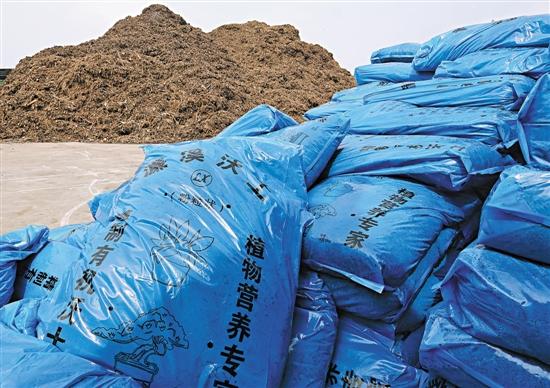 “来料主要是树干、树枝、树叶等园林绿化垃圾,目前我们企业的产品主要是碎木块和有机肥,直径5公分以上的树干被加工成碎木块,树枝、树叶等被加工成有机肥。”据致力新材料负责人谢松林介绍,目前日处理量大约80吨,出货量也可以达到80吨,有机肥和碎木块的比例大约为8∶2,碎木块销往纸厂做原料,有机肥销往花卉市场,基本零污染。
