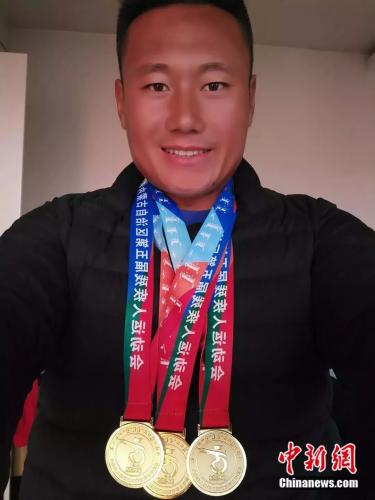 图为在内蒙古自治区残运会获奖后的铁钢。受访者供图