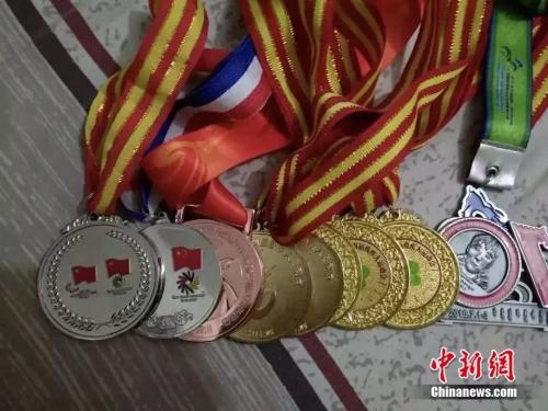 图为在铁钢在体育比赛中获得的奖牌。受访者供图