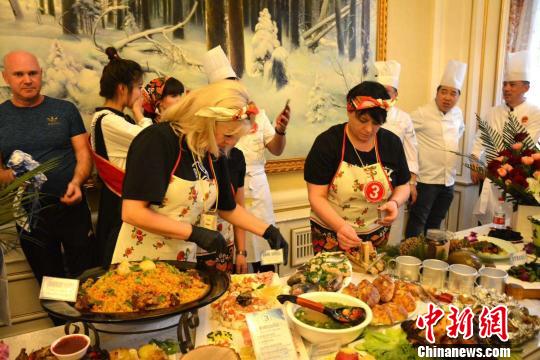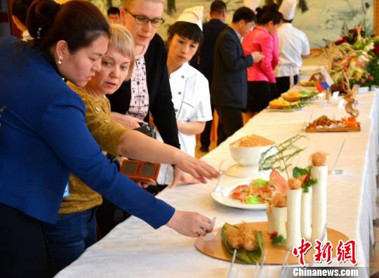 中新网东宁4月26日电 (史琳 姜辉)25日下午,中俄两国共9支代表队齐聚中国边境小城黑龙江省牡丹江东宁市,参加了首届“银河杯”中俄厨艺友谊赛。来自中俄两国嘉宾、评委和美食专家们共200余人齐聚一堂,共同领略国际厨艺风情,品鉴中俄美味佳肴。