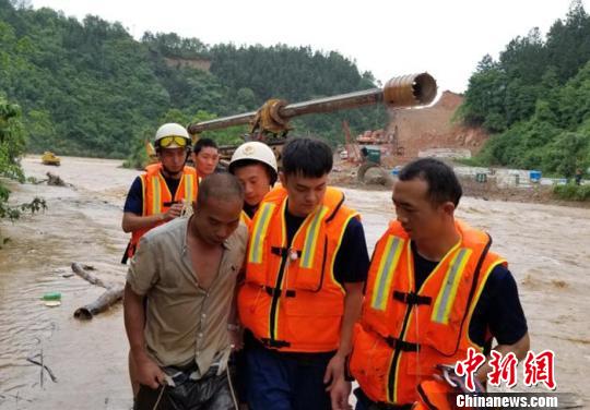 中新网记者20日从消防部门获悉,5月19日14时32分,江西省莲花县消防大队接到报警称,位于该县琴亭镇凫村暴雨导致山洪暴发,一工人被困。
