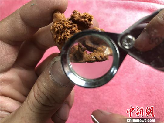 图为放大镜下的微雕。 林波 摄