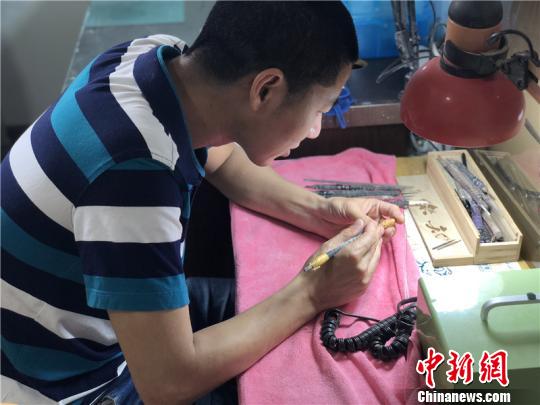 “我将自己的微雕作品送给了身边的亲朋好友,慢慢也积累了第一批的客源。”回忆起学习初期的场景,林军辉的脸上满是微笑。