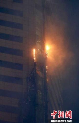金鹰大厦起火部位为九楼一酒店。 泱波 摄