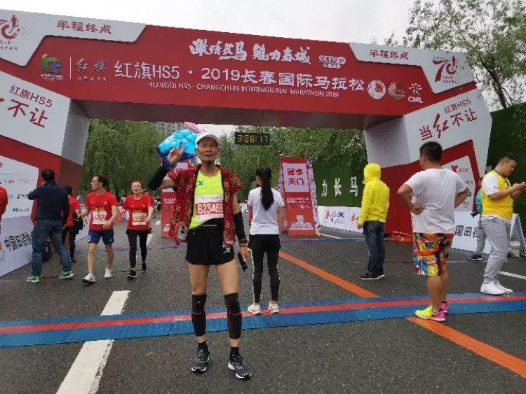 2017年的第一届长春国际马拉松是奚占玉第一次穿花棉袄参加的赛事。走之前,他带着烟、酒和糖块去了夏树云的墓前,告诉她,他要去长春跑马拉松,希望她也能“看到”现场有多热闹,人们有多开心。