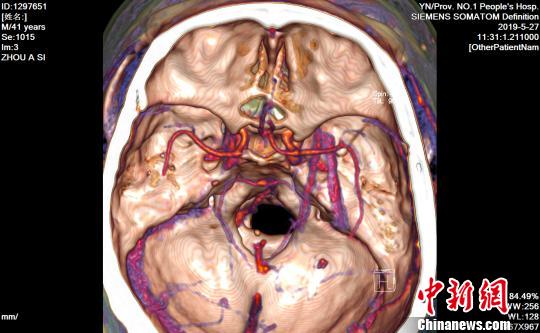 图为周某头部CT重建图像 云南省第一人民医院供图