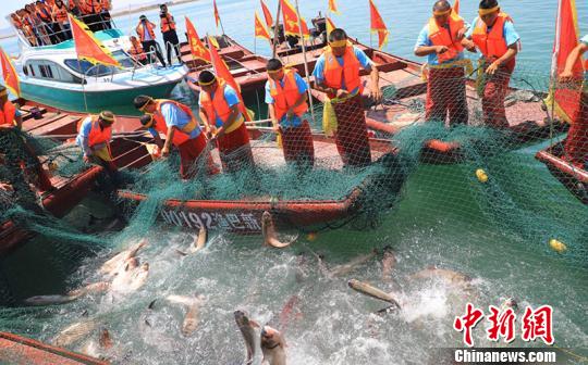 每年的开湖捕鱼是新疆博湖县,的节庆活动之一。(资料图) 年磊 摄