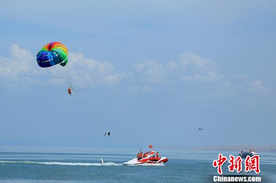游客体验水上娱乐项目。(资料图) 年磊 摄